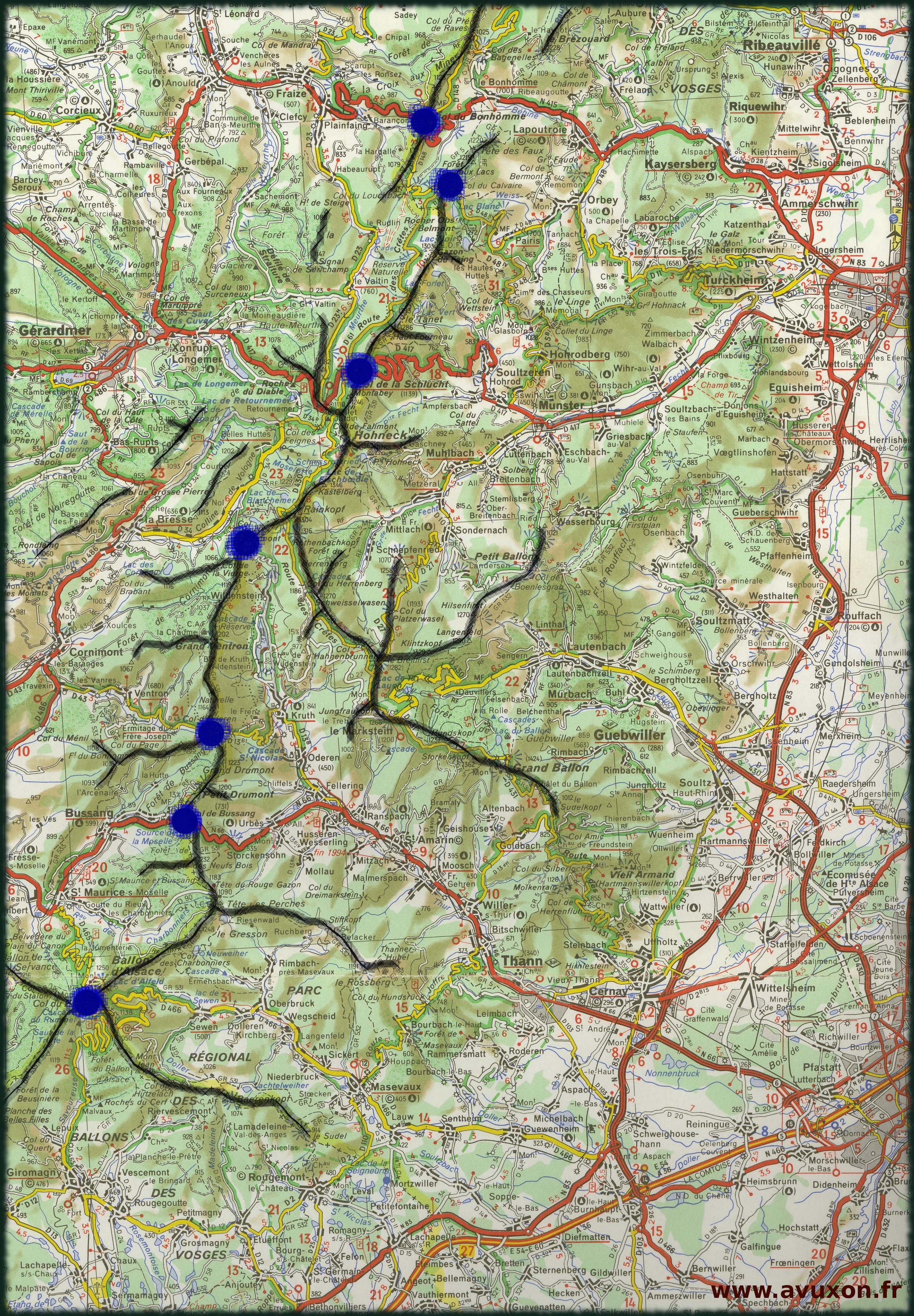 sommets du massif vosgien. Les cols qui traversent cette crête